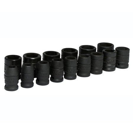 Juego de dados de impacto cuadro de 1/2", 6 puntas, métricos, 15 piezas, URREA