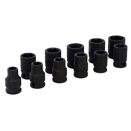Juego de dados de impacto cuadro de 3/8", 6 puntas, métricos, 11 piezas Urrea 72202