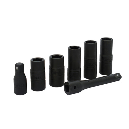 Juego de dados de impacto doble boca cuadro de 1/2" combinados, 6 puntas, 7 piezas Urrea 7400DE