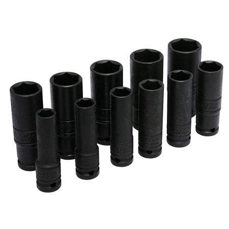Juego de dados de impacto largos pared delgada cuadro de 1/2", 6 puntas, en pulgadas, 11pz, URREA