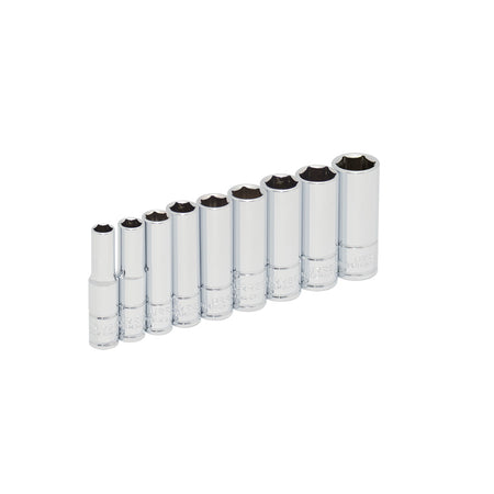 Juego de dados largos cuadro de 1/4", 6 puntas, métricos, 9 piezas Urrea 47202