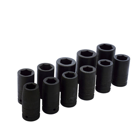 Juego de dados largos de impacto cuadro de 3/4", 6 puntas, métricos, 11 piezas, URREA