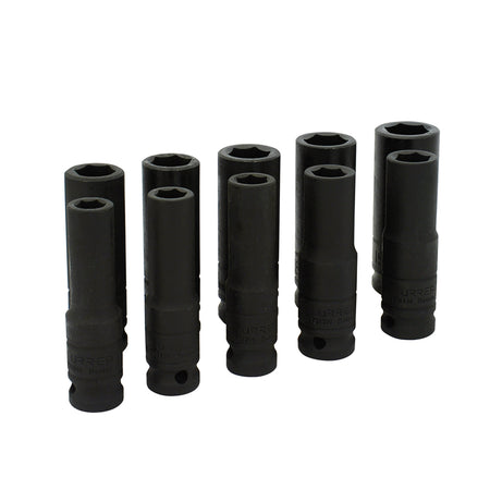 Juego de dados largos de impacto cuadro de 1/2", 6 puntas, métricos, 10 piezas, URREA