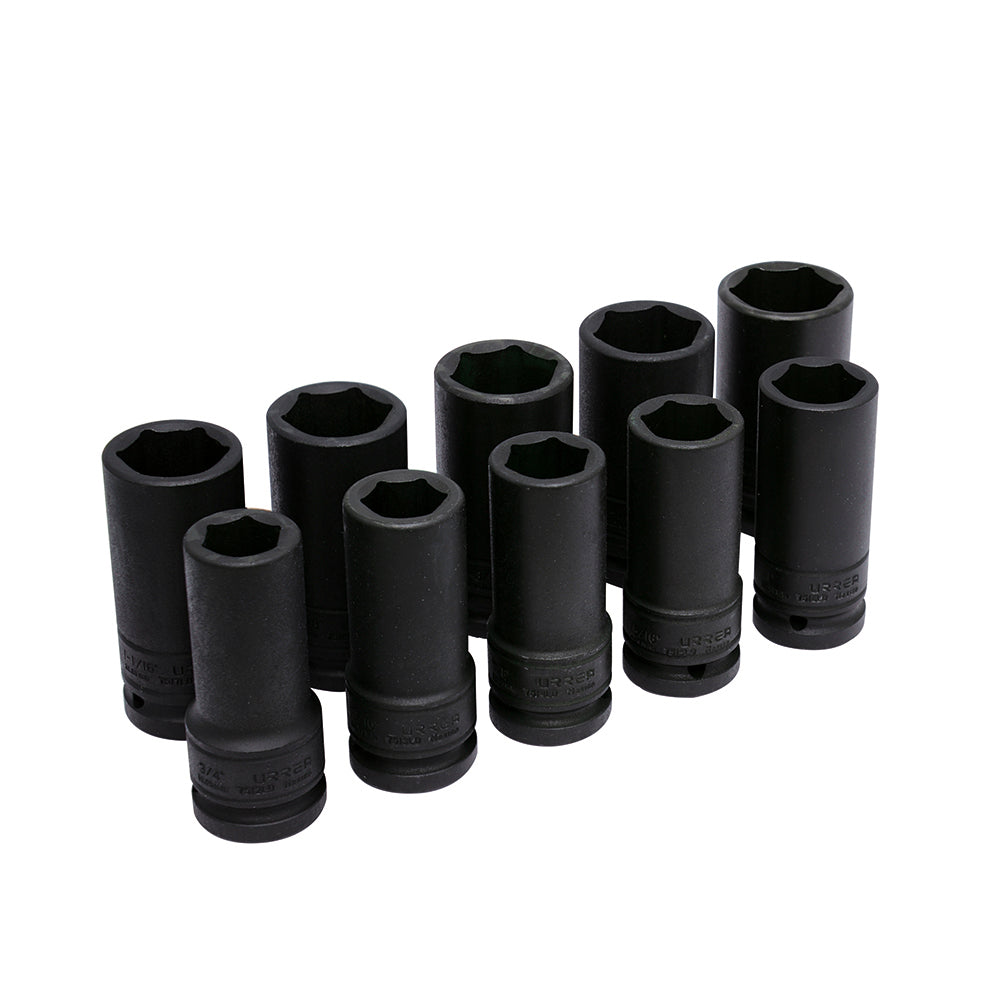 Juego de dados largos de impacto pared delgada cuadro de 3/4", en pulgadas, 10 piezas, URREA