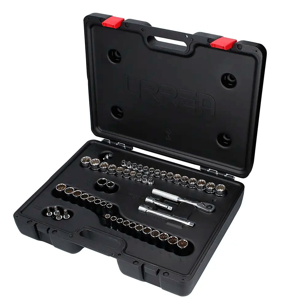 Juego de dados y accesorios cuadro de 3/8" combinado, 54 piezas, URREA