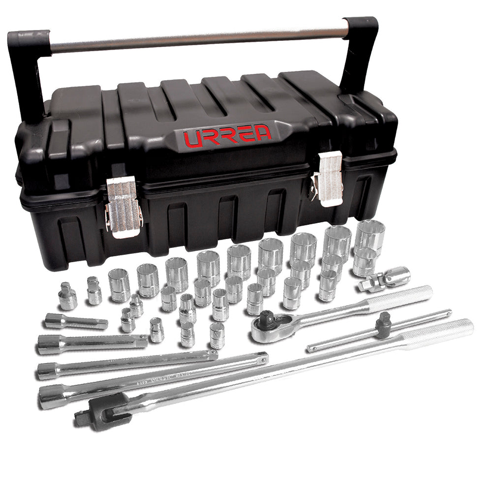 Juego de dados y accesorios cuadro de 3/8" y 1/2" en pulgadas, 37 piezas, URREA