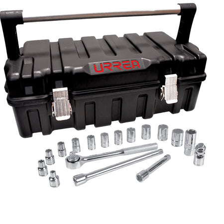 Juego de dados y accesorios cuadro de 1/2" en pulgadas, 18 piezas, URREA