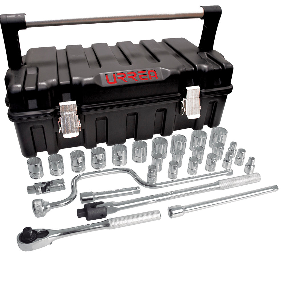 Juego de dados y accesorios cuadro de 1/2" métrico, 29 piezas, URREA