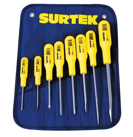 Juego de destornilladores con mango amarillo combinados, 8 piezas en estuche, SURTEK