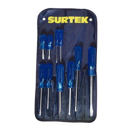 Juego de destornilladores con mango azul combinados, 10 piezas en estuche, SURTEK