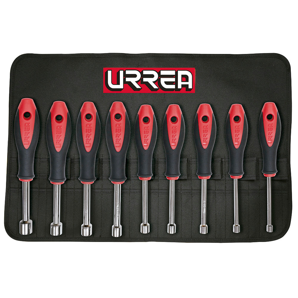 Juego de destornilladores con mango bimaterial, de caja métricos, 9 piezas en estuche, URREA