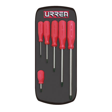 Juego de destornilladores con mango rojo, punta Phillips, 6 piezas en estuche, URREA