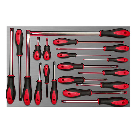 Juego de destornilladores mango bimaterial varias puntas 19 piezas, CH307L-C, URREA