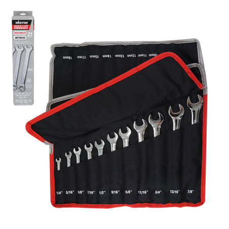 JUEGO DE LLAVES COMBINADAS CrV PULIDO ESPEJO FRACCIONALES & METRICAS 21 PZS 1/4" - 7/8" & 8MM - 18MM, WESTON