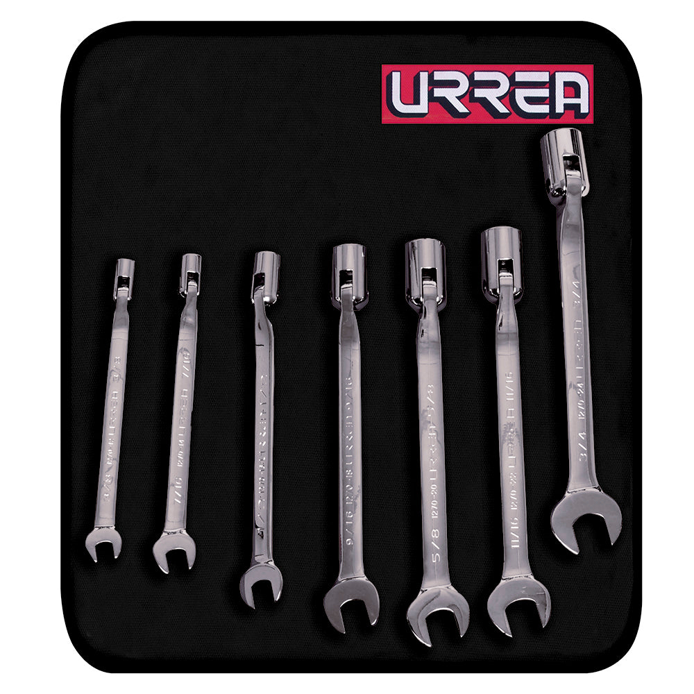 Juego de llaves combinadas flexibles pulido espejo en pulgadas, 12 puntas, 7 pz en estuche, URREA