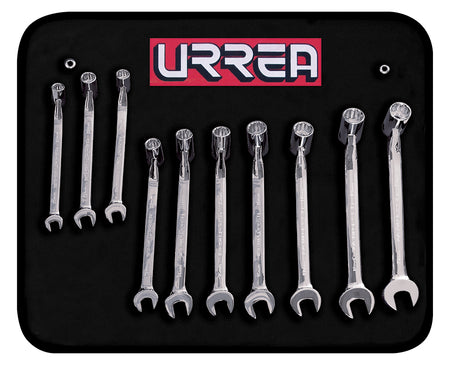 Juego de llaves combinadas flexibles pulido espejo métricas, 12 puntas, 10 pz en estuche, URREA