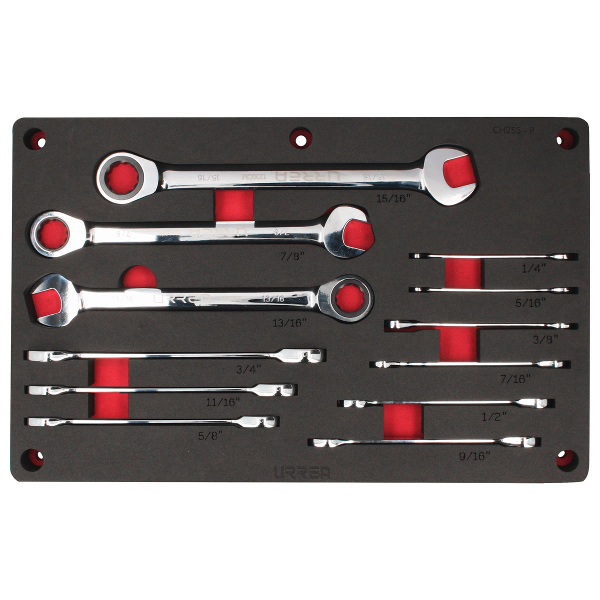Juego de llaves combinadas pulido espejo de matraca en pulgadas 12 piezas, CH255P-C Urrea CH255P