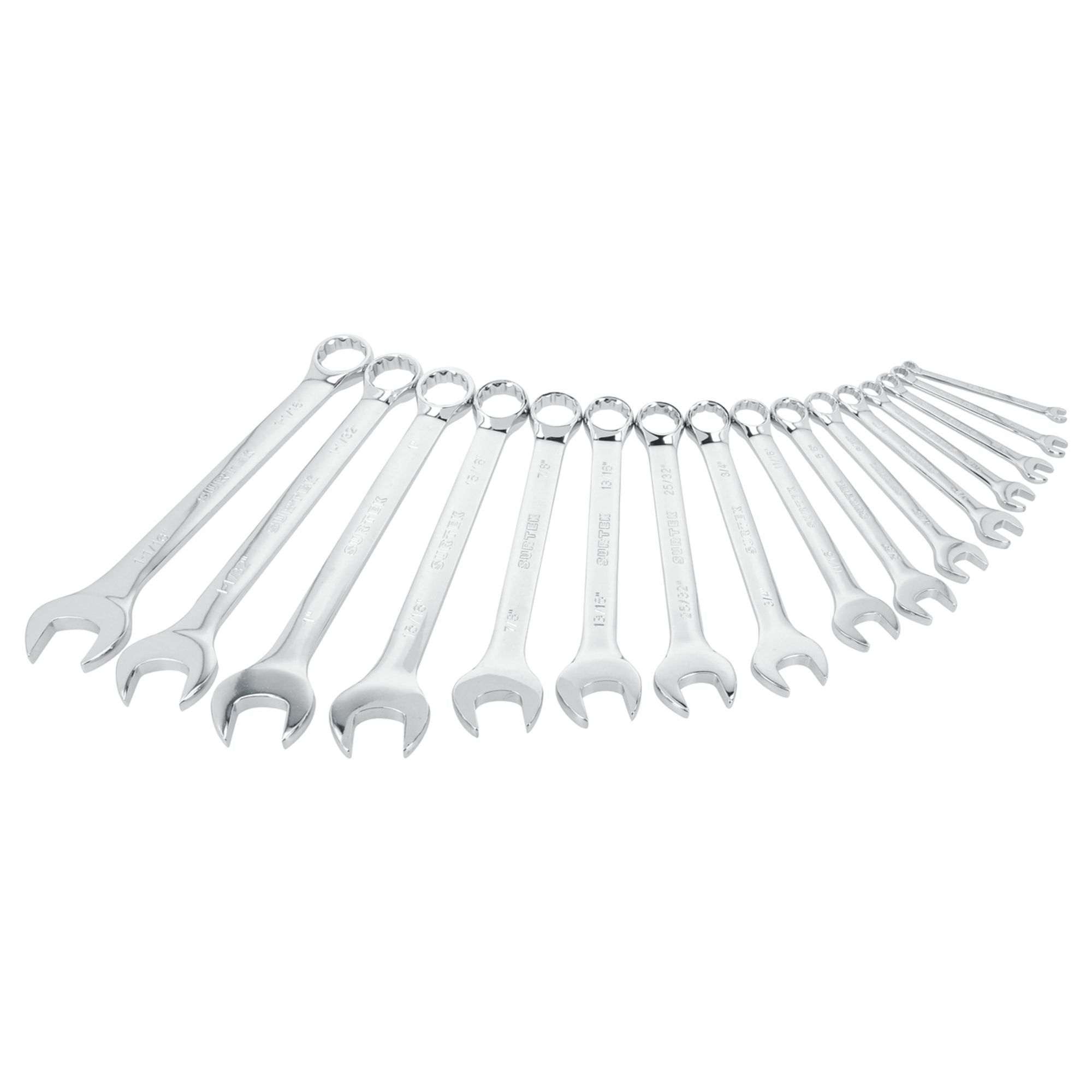 Juego de llaves combinadas pulido espejo en pulgadas, 12 puntas, 16 piezas en rack Surtek 1051R