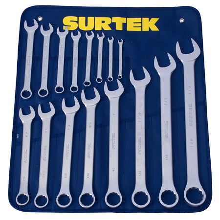 Juego de llaves combinadas satinadas en pulgadas, 12 puntas, 16 piezas en estuche, SURTEK