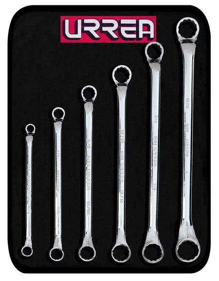 Juego de llaves de estrías pulido espejo de 45° en pulgadas, 12 puntas, 6 pz en estuche Urrea 8100C