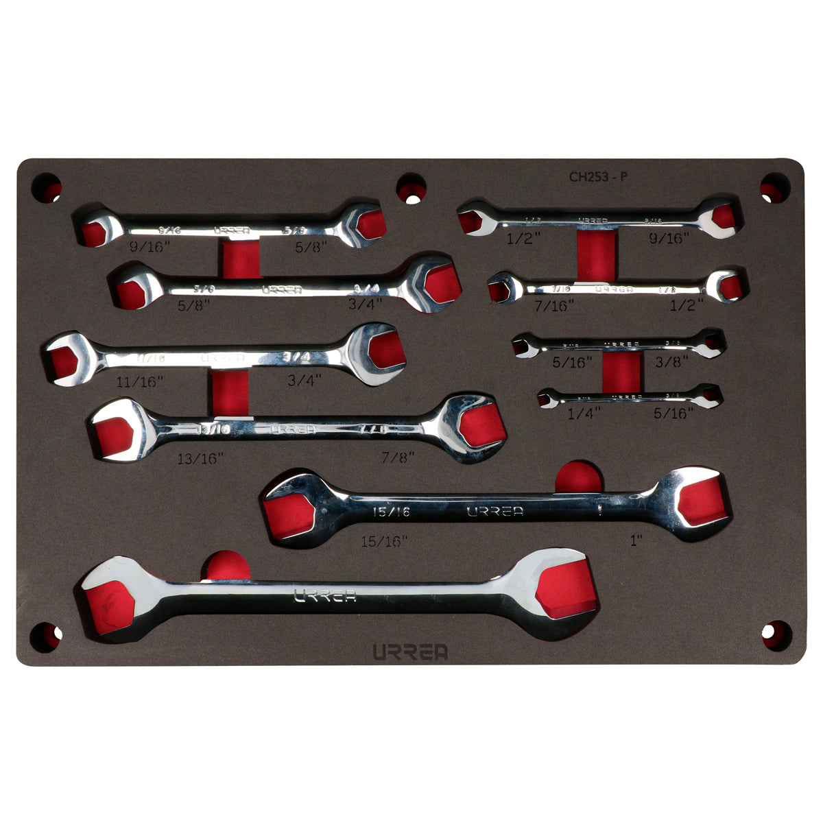 Juego de llaves españolas pulido espejo en pulgadas 10 piezas, CH253P-C Urrea CH253P