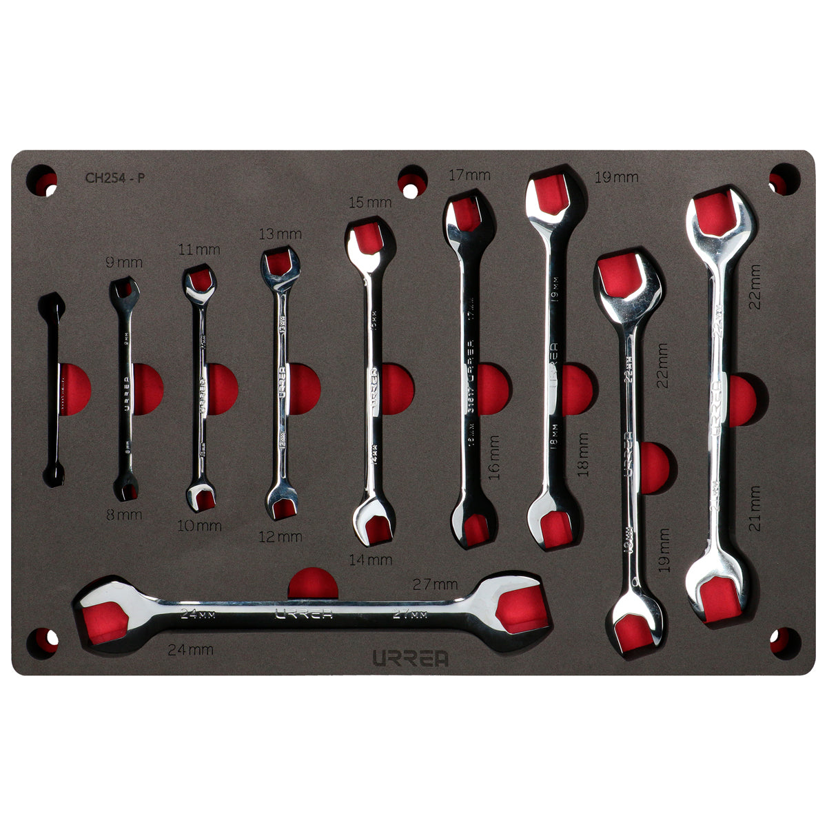 Juego de llaves españolas pulido espejo métricas 10 piezas, CH254P-C Urrea CH254P