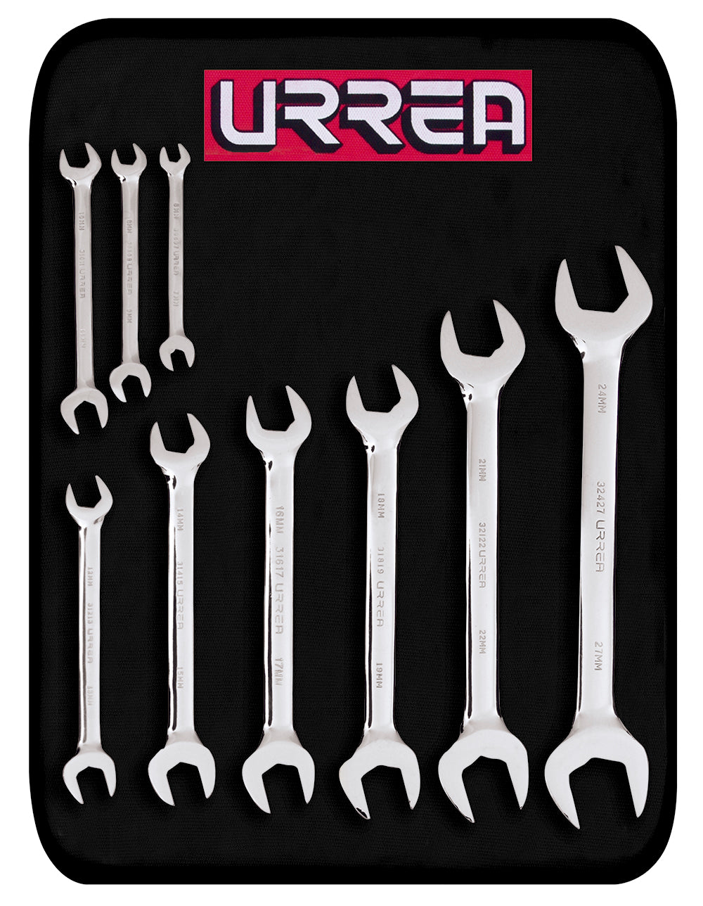 Juego de llaves españolas pulido espejo métricas, 9 piezas en estuche, URREA