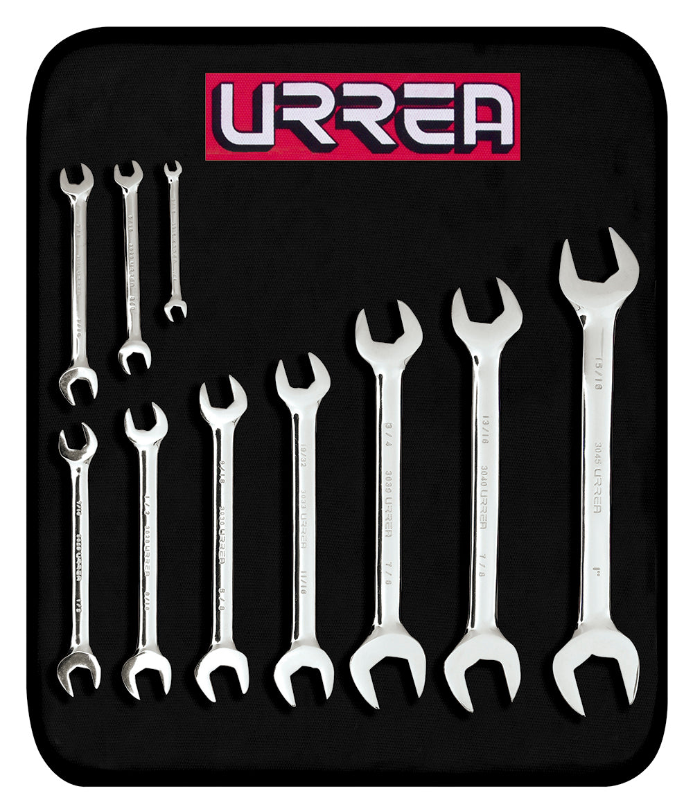 Juego de llaves españolas pulido espejo en pulgadas, 10 piezas en estuche Urrea 3000D