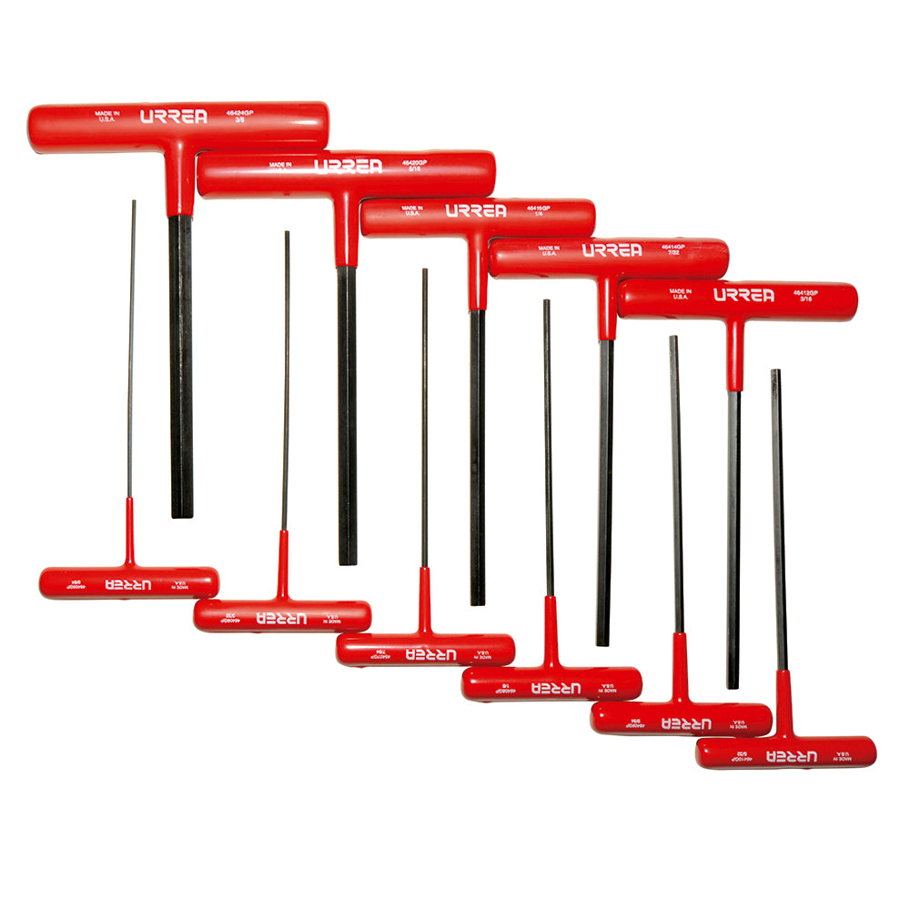 Juego de llaves hexagonales cortas tipo "T" ergonómicas, en pulgadas, 11 piezas en blíster Urrea 4967GP