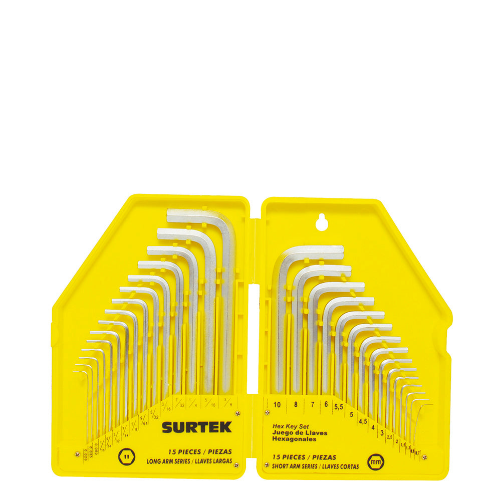 Juego de llaves hexagonales tipo "L", combinadas, 30 piezas en rack, SURTEK