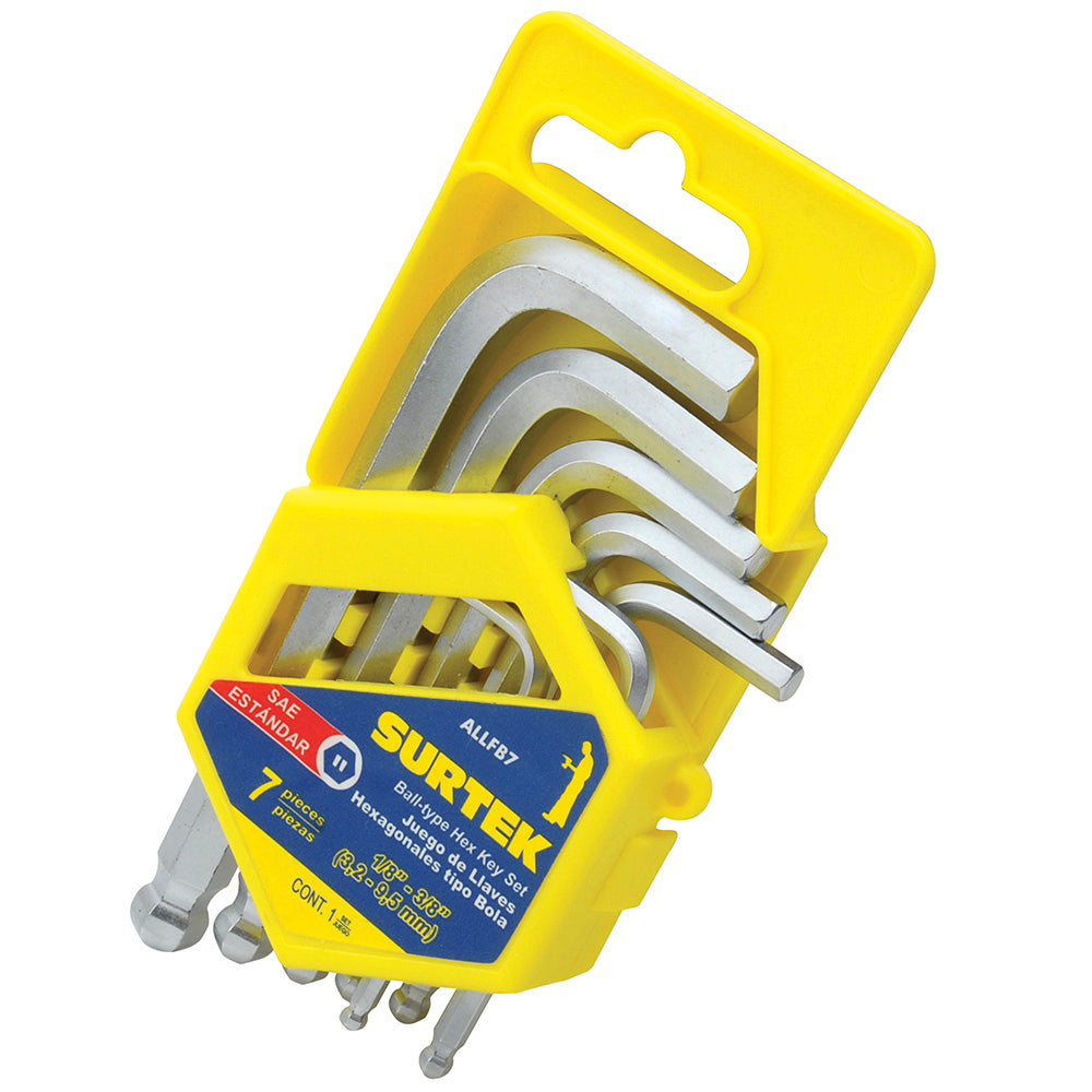 Juego de llaves hexagonales tipo "L" punta de bola, en pulgadas, 7 piezas en rack Surtek ALLFB7