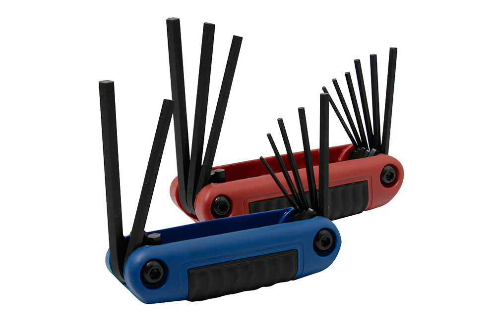 Juego de llaves hexagonales tipo navaja en pulgadas y métricas estuche bimaterial, 16 pz Urrea 49816