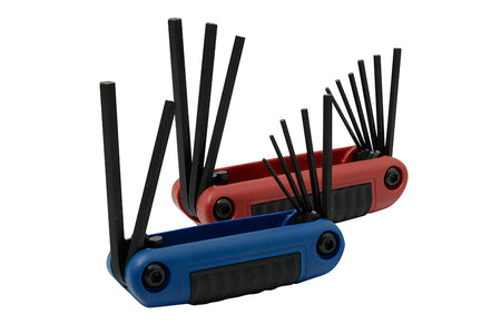 Juego de llaves hexagonales tipo navaja en pulgadas y métricas estuche bimaterial, 16 pz, URREA