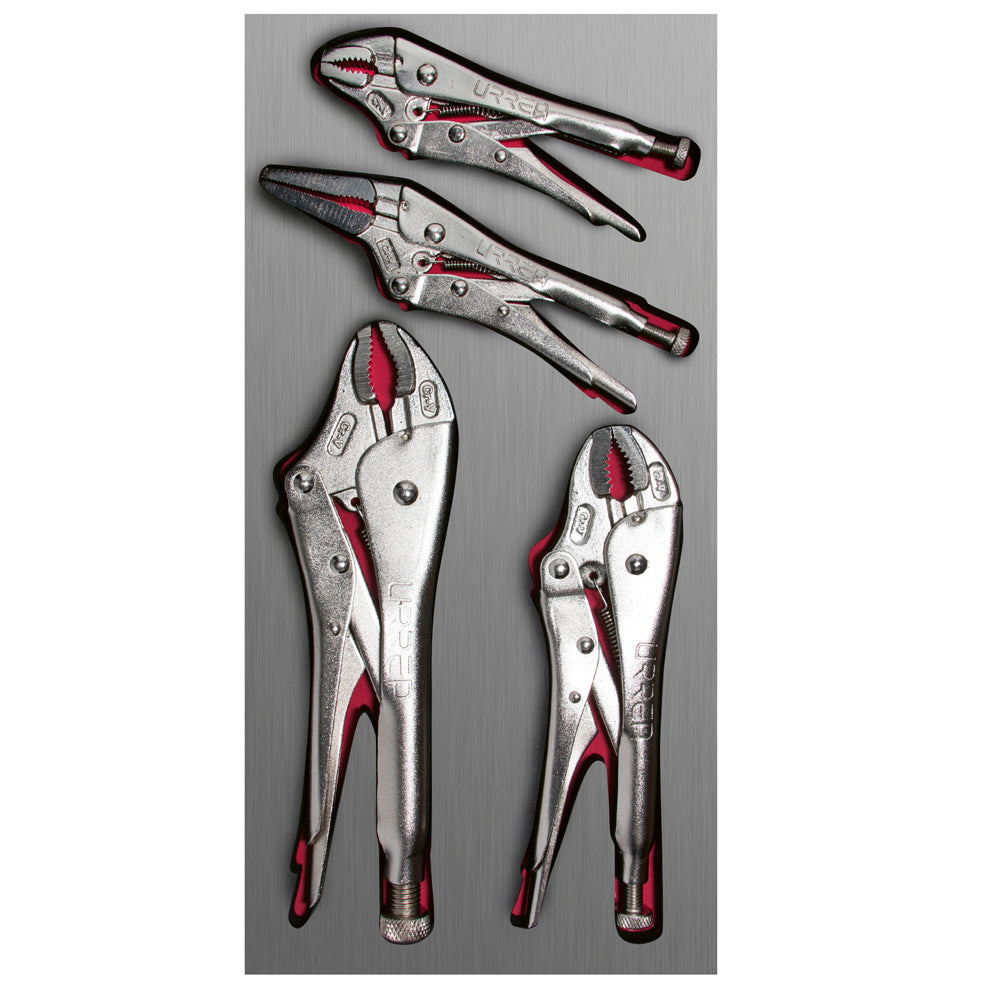 Juego de pinzas de presión 4 piezas, charola CH127L-C, URREA
