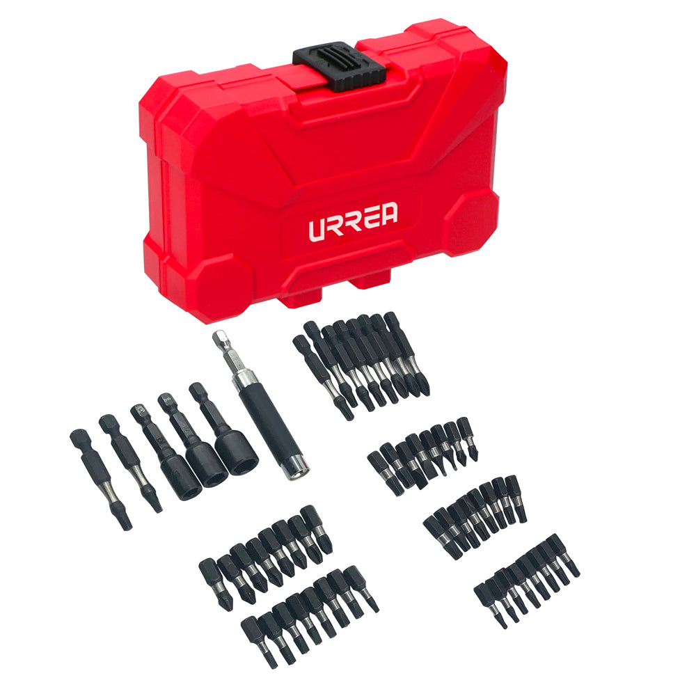 Juego de puntas y accesorios con sistema de amortiguación de impacto, 54 pz en estuche pls, URREA