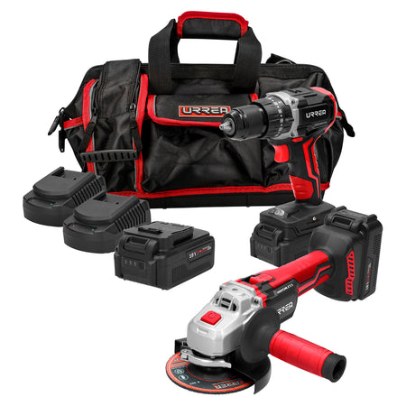 Juego de rotomartillo y esmeriladora a batería Litio-ion 18 V, 3 piezas URREA