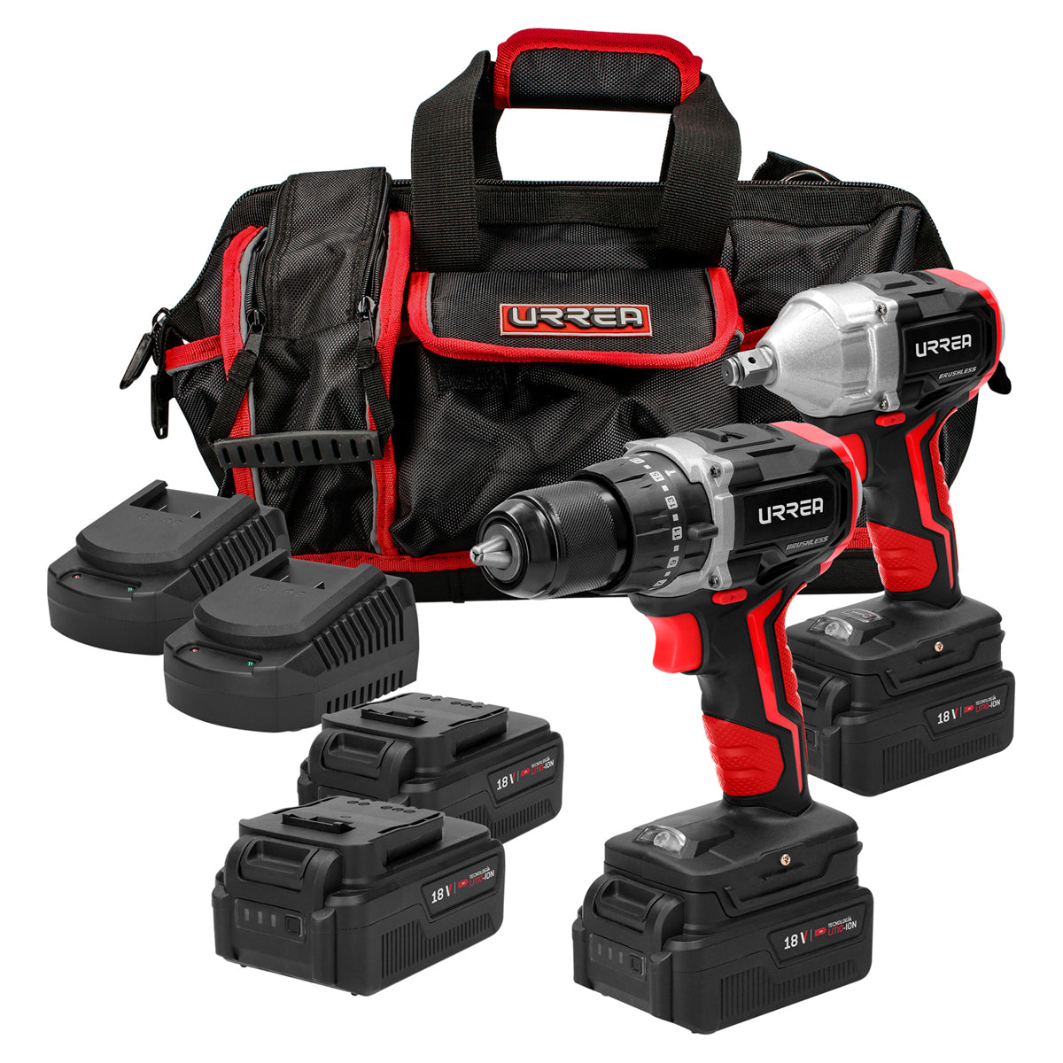 Juego de rotomartillo y pistola de impacto a batería Litio-ion 18 V, 3 piezas URREA