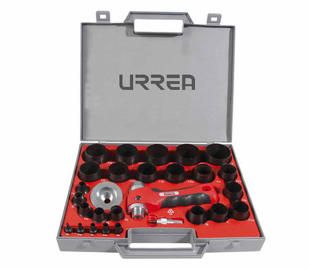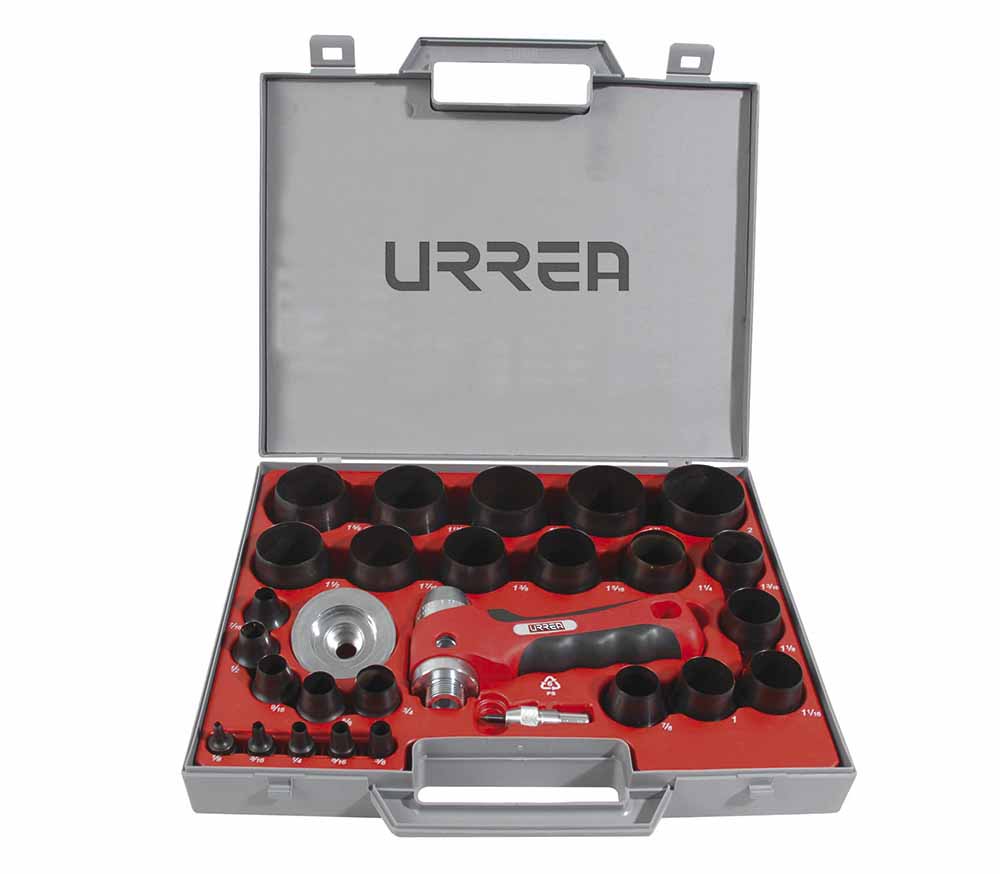 Juego de sacabocados con mango adaptador ergonónico de 1/8" a 2", 28 piezas, URREA