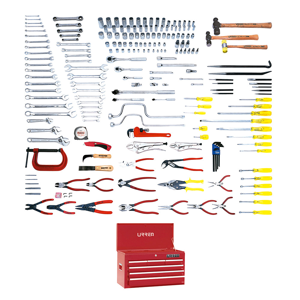 Juego intermedio industrial métrico 202 piezas, sin gabinete, URREA