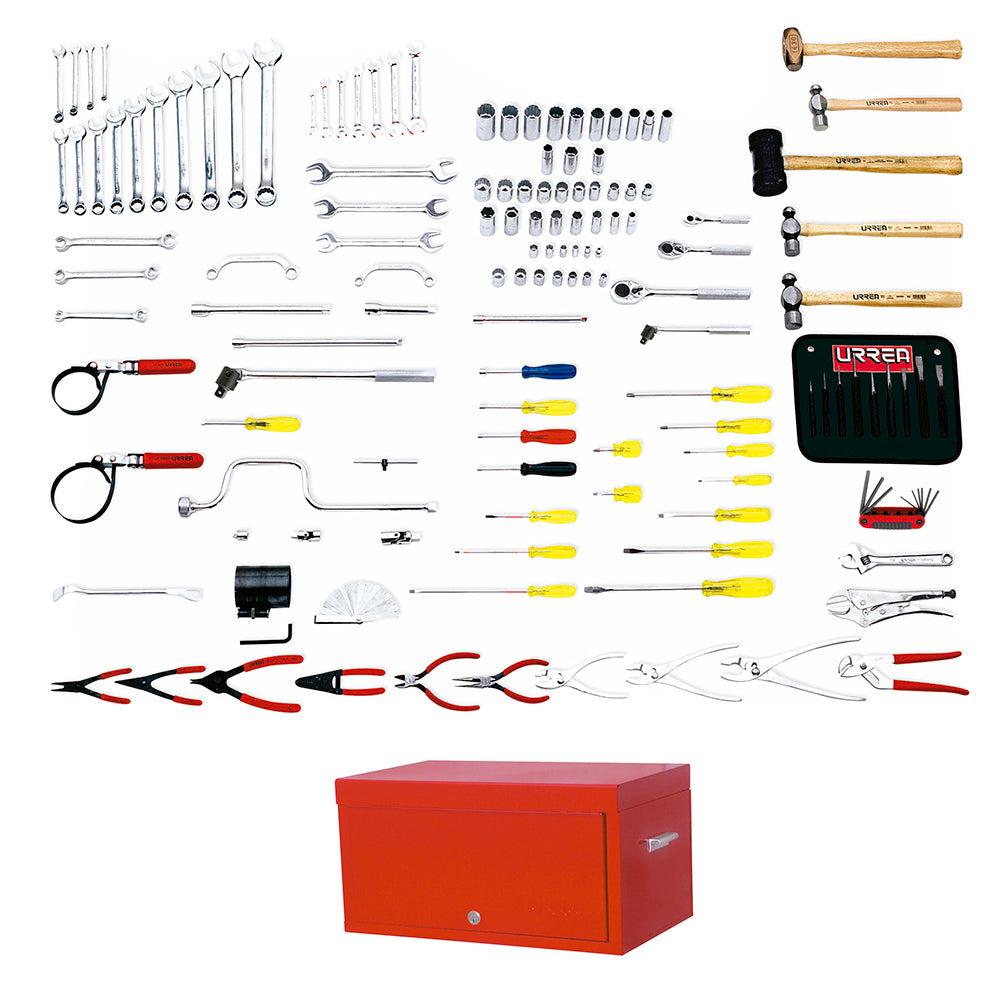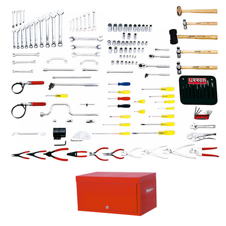 Juego maestro automotriz en pulgadas 137 piezas, con gabinete 9992 Urrea 9906