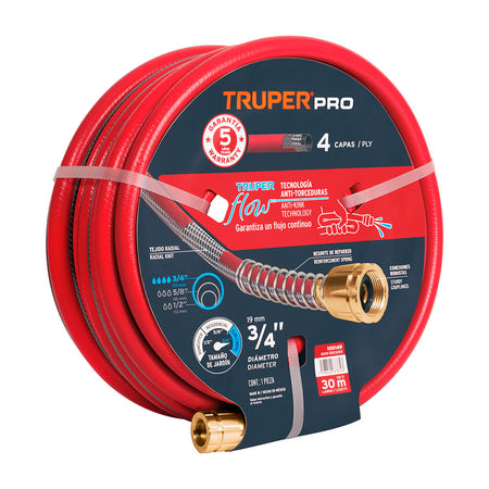 Manguera 3/4' super reforzada 4 capas conexiones metal 30m