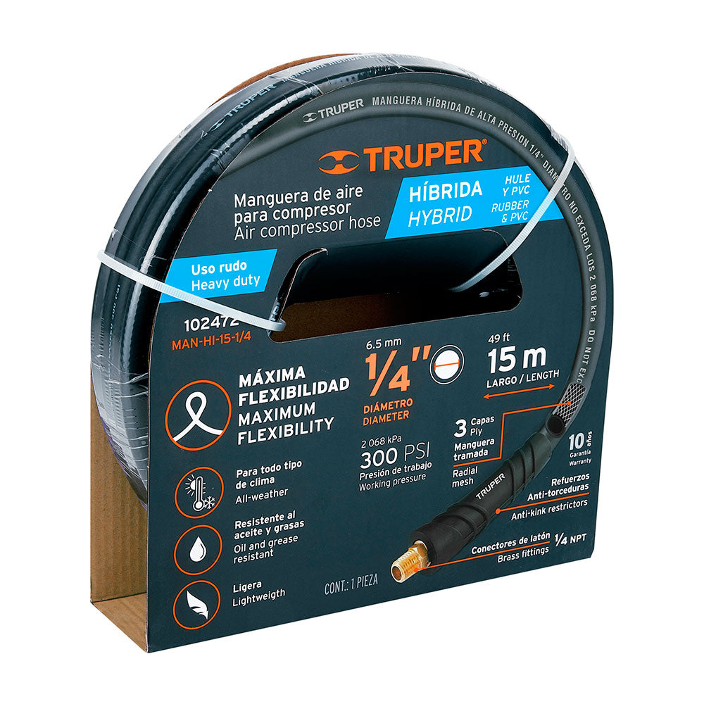 Manguera híbrida para compresor, 15 m x 1/4', Truper