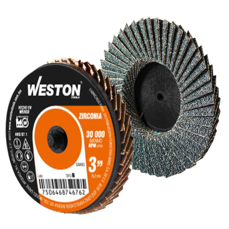 MINI DISCO LAMINADO D/CAMBIO RAPIDO 3" TIPO R ZIRCONIA G040 (Precio x Pieza - Bolsa c/10 pzs), WESTON