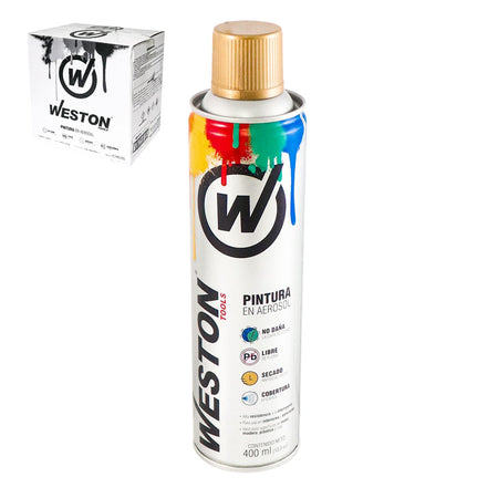 PINTURA AEROSOL ORO BRILLANTE METALICO 400ml (Precio x pieza - Caja C/12 pzs), WESTON